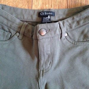Only worn once! Olive green leggings that are super cute and soft! Just a little too tight on myself so I would rather pass them along. This is a steal!