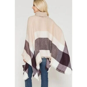 Boutique Madelyn Plaid Turtleneck Poncho Sweater OS