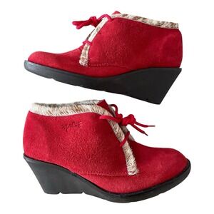 Boutique Martino Canada Red Suede Retro Fur Trim Ankle Boot Size 7 Retail $250