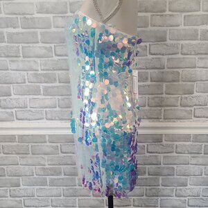 Boutique Mermaid Scales Iridescent Sequin Mini Dress Party Costume Cosplay NEW
