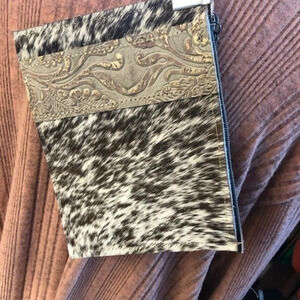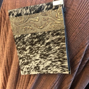 Boutique NWT western boho embossed leather bag with cow hide