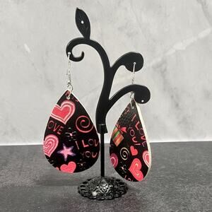Jewelry New faux leather teardrop shaped graffiti drop earrings from Boutique