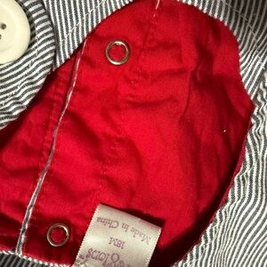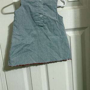 Adorable jumper - wore for the 4th of July Blue and white stripes with dog and American flag appliqué on front Size 18 months Smoke free home