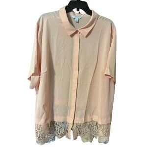 New Peach Whip Button Up Short Sleeve Boutique Blouse