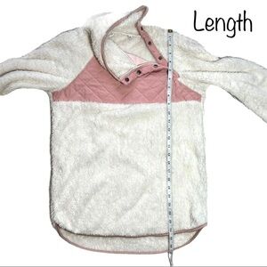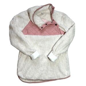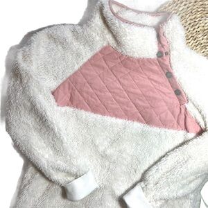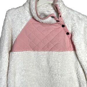 Boutique Pink and White Fuzzy Teddy Bear Sherpa Pull Over Sweatshirt Sweater Size Small
