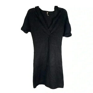 Boutique Proof Black V-Neck Knit Lightweight Hooded Coverup Dress