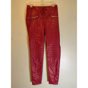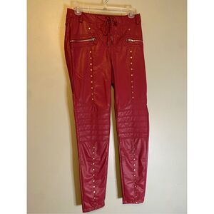 Boutique Red Maroon Studed Tie Closure Zip PocketsPunk Rock Skinny Pants XL