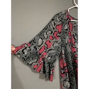Boutique Red Pink Snake Print 3/4 Flutter Sleeve Dress With Pockets 2X