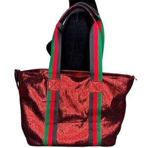 Boutique Red Sparkly Tote Bag w/Racing Stripes
