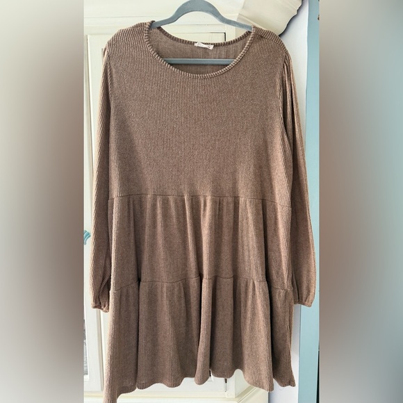 This casual brown ribbed dress offers a cozy look for any occasion. The fabric is so incredibly soft like butter.