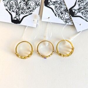 Boutique Set/ 3 Simulated Gemstone Rings Narrow Band Gold Tone Pink Green Purple