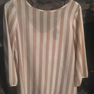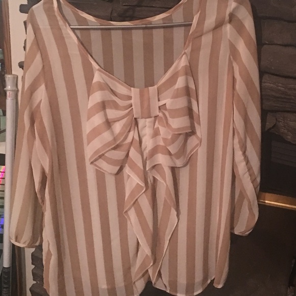 Beige and white sheer blouse with bow on back. Never been worn! In perfect condition