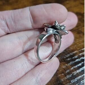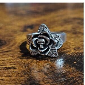 Boutique Silver-Tone Mixed Metal Skull in Rose Ring Size 7.5 ~ Gothic Punk Biker