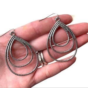 Boutique Sliver Tone Double Tear Drop Textured Drop Earrings