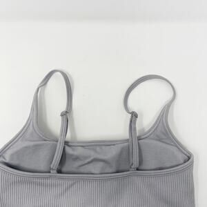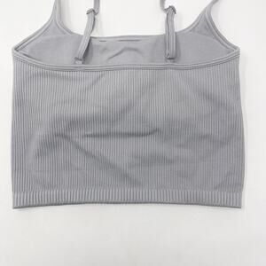 Boutique Small Gray Ribbed Cropped Tank with Built in Shelf Bra Spaghetti Strap