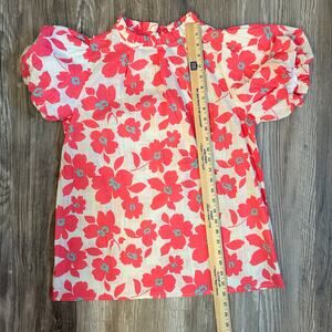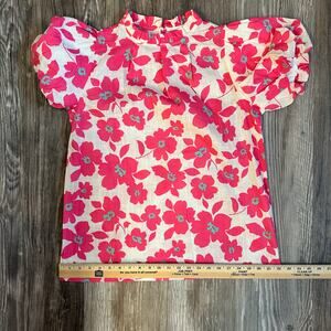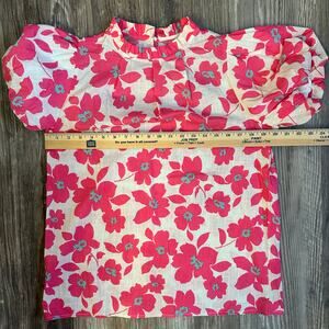 Boutique Style Floral Puff Sleeve Blouse Ruffled Neck Pink Preppy- Size M