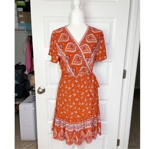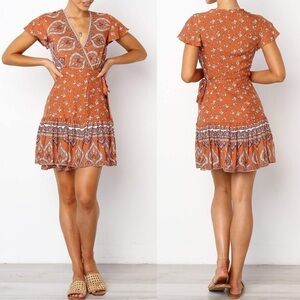 Bohemian Wrap style dress in rust color