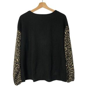 Boutique Twenty Second Black & Brown Leopard Sleeves Knit Top M
