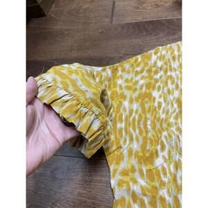 The shirt is unbranded. I’m guessing this to be a size large based on the measurements and it appearing that it would be an oversized blouse. Please see measurements in the pictures though to ensure fit before buying. Could possibly fit a size Xl also. Shirt is in great condition. Please see pictures and ask any questions prior to buying. Thanks for looking!