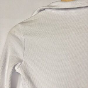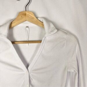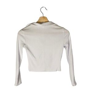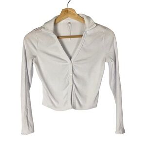 Boutique White Ribbed Button Front Collar Cropped Long Sleeve S