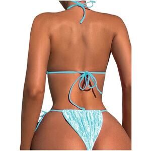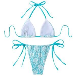 Boutique Women's Blue Bikini With Lace Overlay Large Set