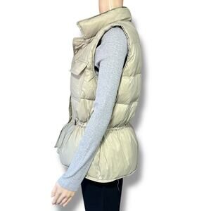 Down Puffer Vest Drawstring Waist Khaki Tan Button Close