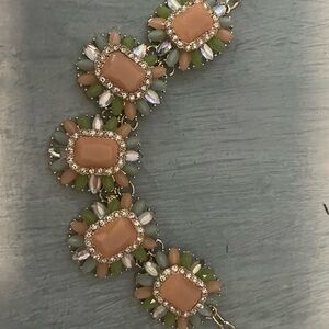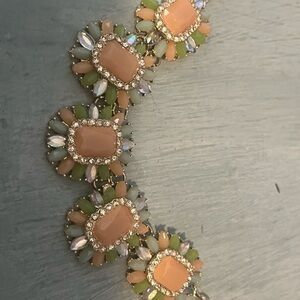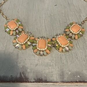 This stunning necklace features a blend of peach and gold tones, perfect for adding a touch of elegance to any outfit. The intricate design showcases a harmonious mix of colors, making it a versatile accessory for any occasion.