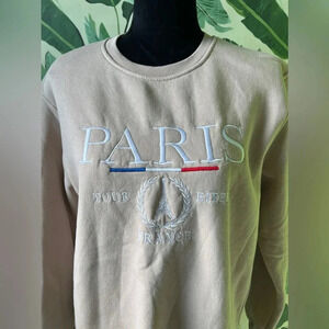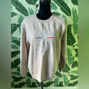 Boutique Womens Tan Paris Embroidered Crewneck Sweatshirt Large