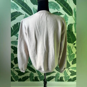Excellent used condition. Like new. Super soft on the inside. Pit to pit measures apx 21.5 inches across front. Length measures apx 26 inches from shoulder to hem.