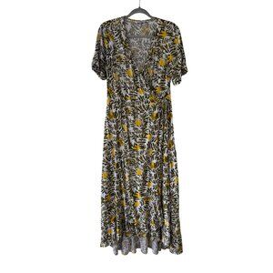 Boutique Womens Wrap Dress Lemon Leaf Print Short Sleeve V-Neck Maxi Length