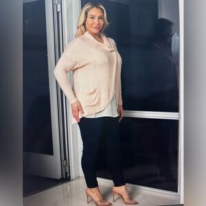 Boutique - Women's peach/Cream Cowl Neck Surplice Sweater