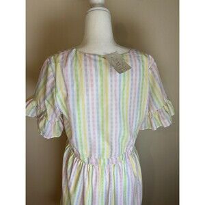 Boutique XL Stripe Wrap Dress Preppy Coastal Ruffle Pastel Tie Peasant Boho