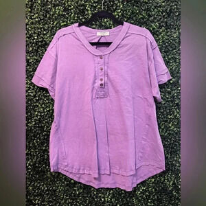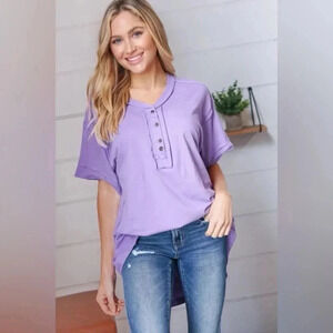 This chic cotton cuffed short-sleeve top is a perfect transitional piece from winter to spring. Made with a functional placard yoke, designer metal buttons and out seam stitch details, this back pleated top is versatile and stunning.