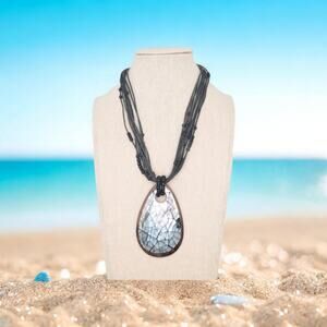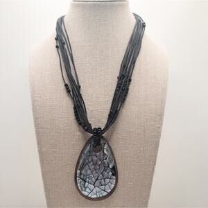 Jewelry beaded multi-strand necklace with abalone & wood mosaic teardrop pendant from Boutique