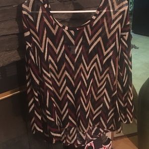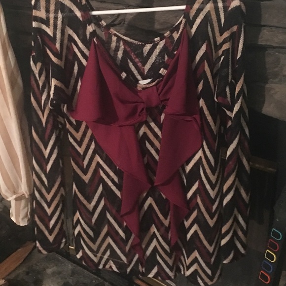 Maroon, black, cream, and white blouse with maroon bow on back. Like new condition! Never been worn!