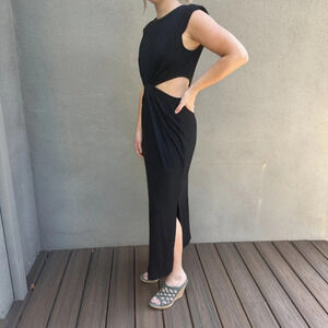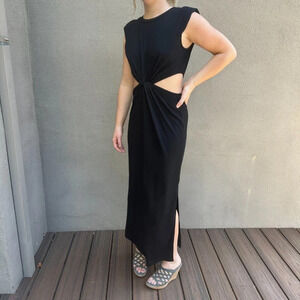 Boutique bought Black Knit Cut Out Shoulder Pad Maxi Dress - size M