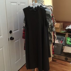 Black faux leather dress. Mock style turtle top. Looks great for layering and also for transition into summer because it is lightweight. Selling medium. Red tassel necklace in photo is available in Separate listing as well.