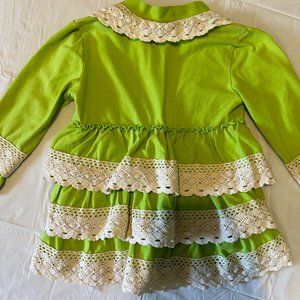 Boutique brand size 2T green cardigan with crochet trim. This is in EUC with no flaws. Great for fall or christmas.