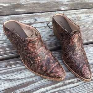 Boutique by Corkys Size 9 Amina Mules Snakeskin Animal Print Heels Point Toe