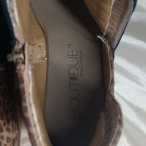 Ankle boots that zip up, half black half cheetah print. used in great condition! size 10.