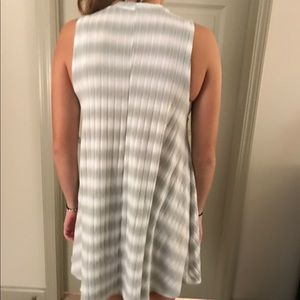 Gray and white striped boutique dress. Sleeveless with a high neck.