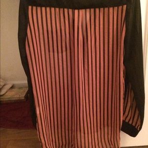 This is such a cute shirt! It's fits like a M-L. It is long sleeve and is like a sheer material! It's black and orange. Please feel free to ask any questions.