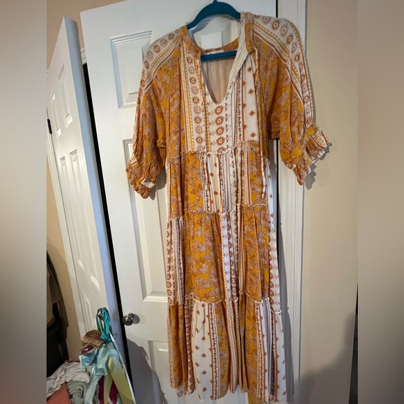 Dress is midi and lined. Beautiful colors
