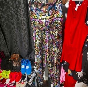 Boutique strapless colorful snakeskin jumpsuit 3x