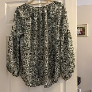 No tags but never worn. Boutique top with bubble sleeves! Flowy and a little in the longer side so perfect to pair with leggings. Olive green color with white.