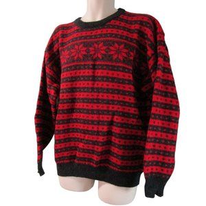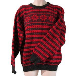 Bouviac Norway Fair Isle Oversize Unisex Sweater Medium EUC Wool Red Charcoal