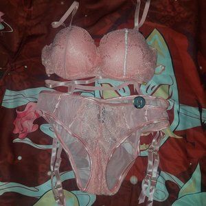 Boux Ave Pink Affair 3 piece garter lingerie set size M