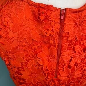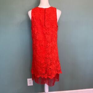 Effortlessly stylish and perfect for any occasion, this Bow Arrow shift dress features a stunning floral crochet lace overlay with a playful fringe hem. The vibrant orange hue makes it a standout piece, ideal for boho chic, festival fashion, and vintage inspired looks.