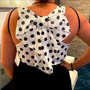Beautiful bow back tank top- Black with white polkadots- Perfect for the summer! Size Small- BRAND NEW