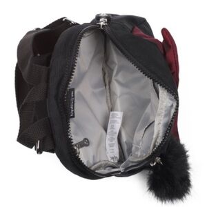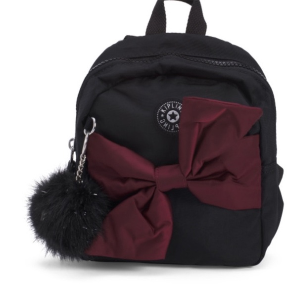 Stylish kids backpack in black with a burgundy bow. Perfect for school or outings.